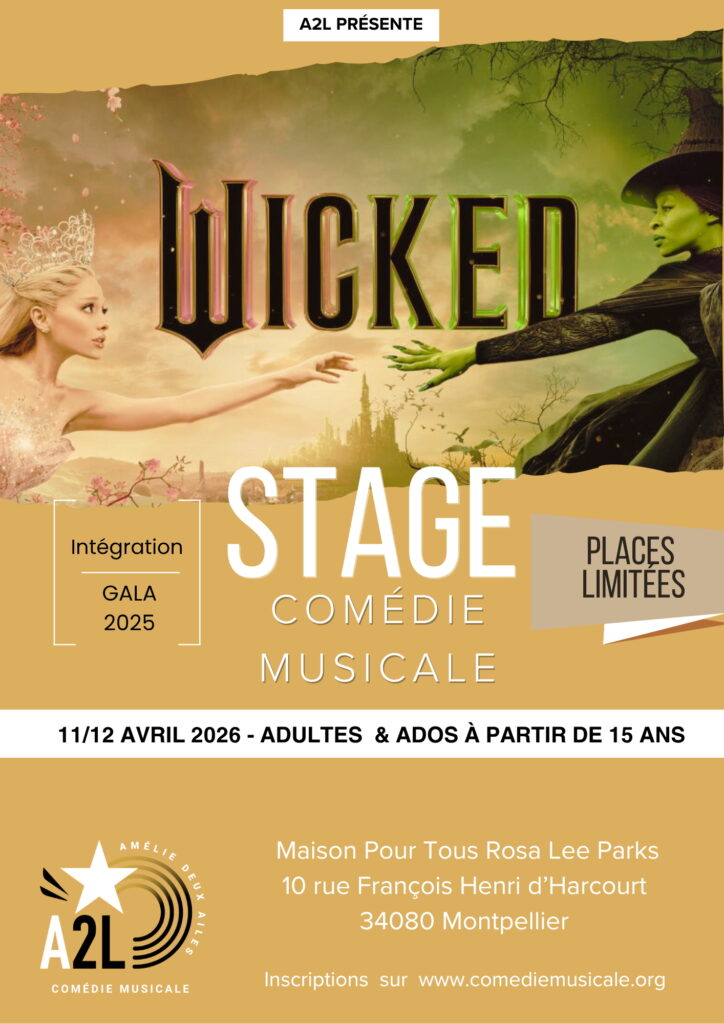 Ce stage s’adresse aux adultes et ados déjà fan ou juste curieux.ses de découvrir la comédie musicale Wicked (sortie au Cinéma Nov. 2024 partie 1 et Nov.2025 partie 2) . Vous aurez deux jours pour vibrer sur le fameux “One short Day in the Emerauld City », un tableau harmonieux, joyeux et magique performé en nombre que ce soit sur scène ou sur grand écran!